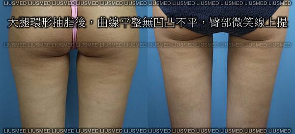 Q小姐大腿環形抽脂後不但腿型變美,屁股感覺更緊實,微笑線上提,蜜桃臀再現。