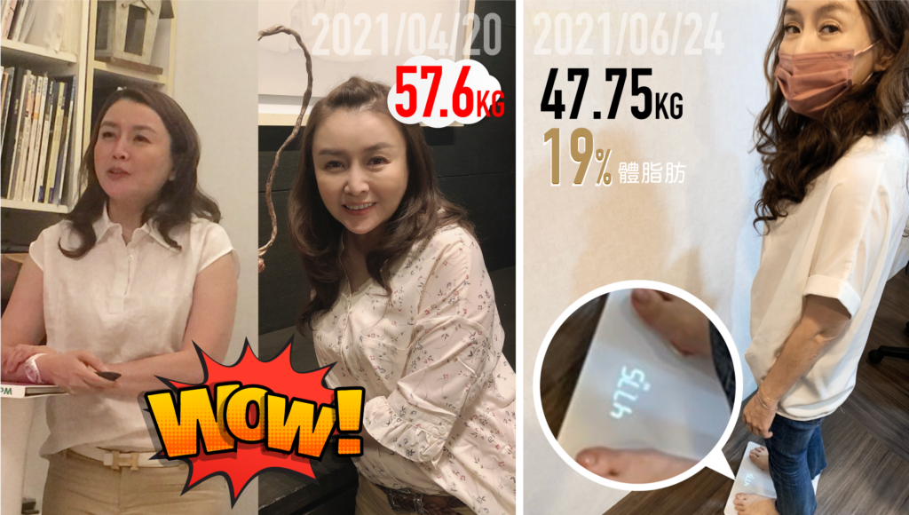 減重療程進行兩個月左右,她已經降回到十年前的體重,不過愛美的她說要乘勝追擊,再瘦一點!在療程第三個月,更瘦到她不曾達標的夢幻數字。體脂肪同時也下降到漂亮的19%。珊綾在治療過程中也很積極配合,療程後肌肉量不減反增。