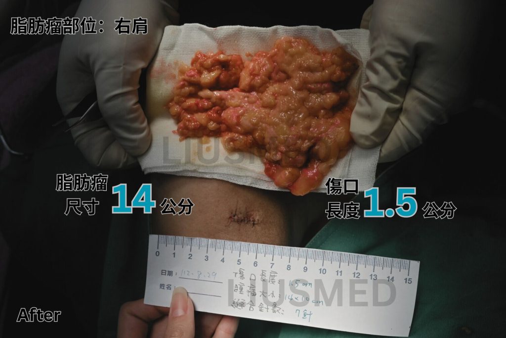 真實案例見證:14公分巨大脂肪瘤,傷口僅 1.5 公分 (比例 11%)