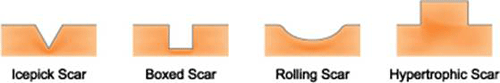 2. 合併飛梭雷射或微創飛梭雷射加上磨皮Erbium-YAG/二氧化碳雷射(嚴重者尚可加皮下切開術subcision)