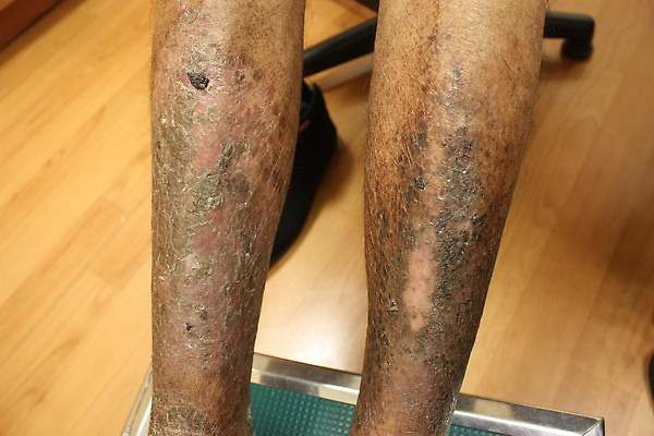 (圖:乾燥性皮膚炎因為癢又洗熱水的結果:更乾更癢並且皮膚出現裂縫)