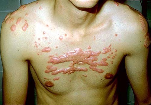 若傷口較嚴重的傷害,或發生感染有發炎反應,或因故時間較久才癒合,多會生較多的纖維,疤痕也因此較肥厚腫大變得很難看。肥厚疤痕若處理得當,經過較久的時間疤痕逐漸成熟,還是會有某一程度的消退。若處理不當,則會變得更嚴重。有些人因體質的關係。會產生另一種很嚴重的肥厚疤痕-蟹足腫。它會向外生長超出當初疤痕的範圍,治療上也相當麻煩。