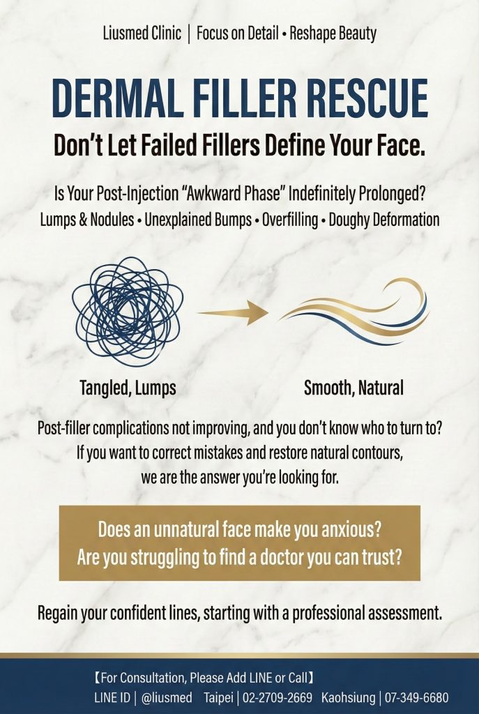 Posted in DermatologyTagged AestheFill side effects, Dermal filler failure, Dermal filler revision, Dermal filler sequelae, Dr. Liu Ta-Ju, Ellansé lumps, Filler rescue, Hyaluronic acid nodules, Kaohsiung medical aesthetics, Liusmed Clinic, Lump removal, Lumps under the eyes, Micro-invasive surgery, Pillow face treatment, Sculptra lumps, Taipei medical aesthetics